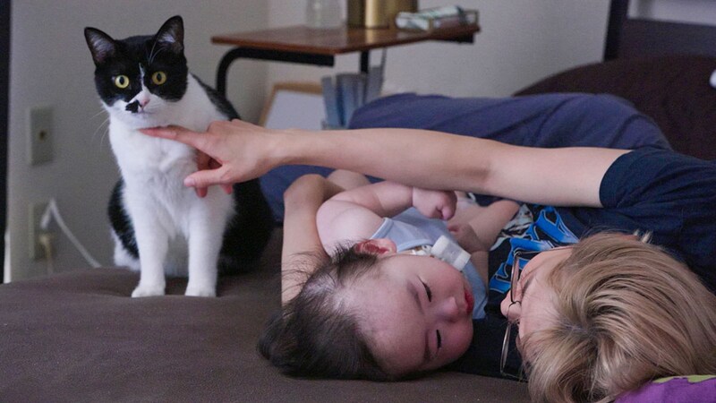 本作が捉える家族は、音楽制作やダンスに取り組むアーティストの隆一、その妻・朱香、そして生まれたばかりの息子・珀久。「かわいい~」もちりとした珀久の白い肌に何度も頬をすりよせる朱香。3人と猫のフィガロの暮らしには笑顔が耐えない。が、珀久は約12万人にひとりという「メンケス病」を抱えている。銅の欠乏により様々な健康問題が生じる指定難病だ。出産から診断までの日記には現実をなんとか受け止めようとするふたりの切実な言葉がありのままに綴られていた。「あのときは、支えがお互いしかなかったよね」。逃げ場のない孤独と不安に向き合いつづけ、ここまで紡いできた日常——そうして家族は、珀久の喉の切開手術という大きな決断のときを迎えようとしていた。