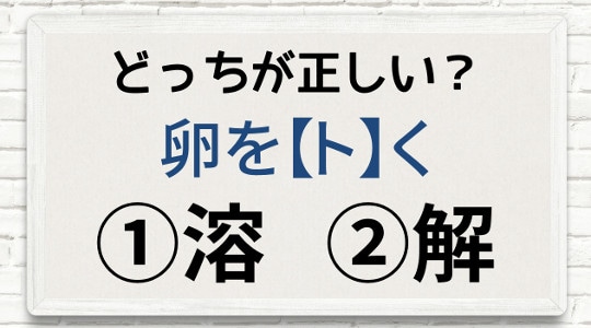 【答】 溶まぜて液状にすること。「解く」は問題を「とく」、絡まったひもを「とく」というときなどに使用します。