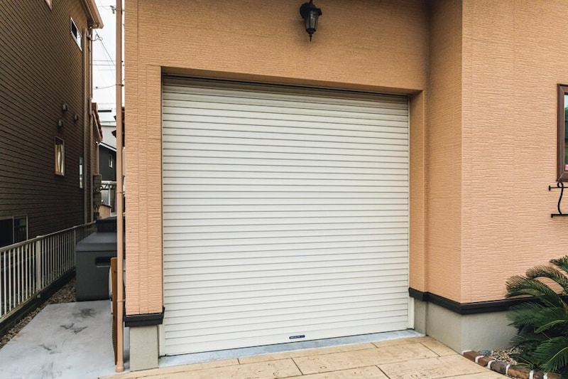 ガレージは接道面にシャッターを備え、閉めると中がメーター工房になっていることは分からない。