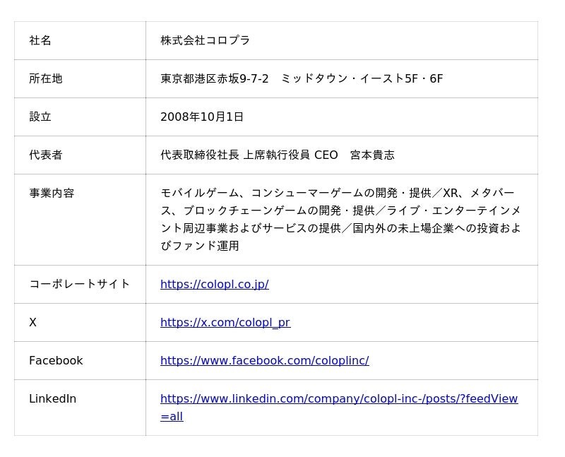 コロプラは、ジャンルにとらわれない多種多様なモバイルゲームを提供しています。世界初の位置ゲー*『コロニーな生活』をはじめ、本格アクションRPG『白猫プロジェクト』や生成AIを活用した『神魔狩りのツクヨミ』など、「Entertainment in Real Life」というミッションのもと、最新のテクノロジーを活用した新しいエンターテインメントの創出に取り組んでいます。