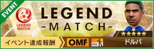“レジェンドマッチ”は、レジェンドチームと対戦し、勝利ポイントゲージが一定量に達すると豪華なアイテムが獲得できるイベントです。今回の“レジェンドマッチ”では、10,000pt達成報酬の★5選手が入れ替わり、新★5選手「ドルバ」が登場します。