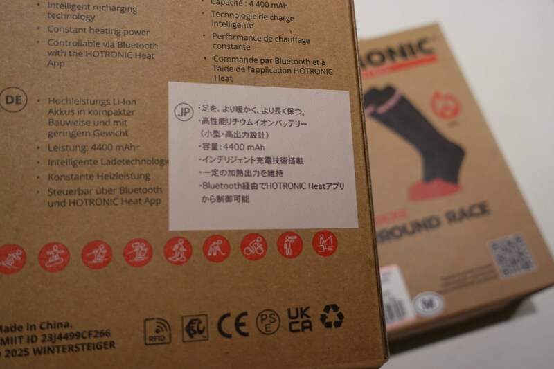 今回試したのは、このシリーズの中で唯一、日本国内で入手可能(取扱:クレブスポーツ)な「HEAT SOCKS SURROUND RACE」。パフォーマンスを重視した薄型設計のモデルで、その主な特徴は以下のとおりだ。