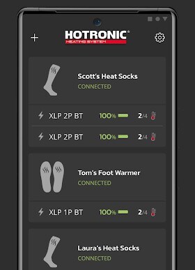 温度調整は、ユーザーマニュアルも確認できる専用アプリ『HOTRONIC Heat App』(Android版/iOS版)で行うが、接続は想像以上に簡単。表示は英語ながら、Bluetooth機器のペアリングに慣れていれば迷う要素はない。アプリと本体それぞれのボタンを押すだけで、左右それぞれを接続し、好みの温度を4段階から選べば準備完了だ。
