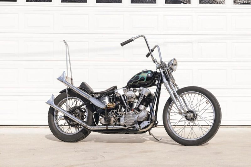 1941 EL|サニースポットの代表である城さんの愛車のナックルチョッパー。近い将来、ガレージに野見山さんの愛車が入る日をイメージするためにディスプレイ中。