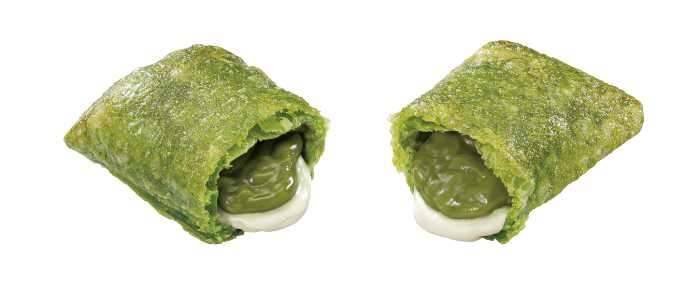 宇治抹茶クリームとミルククリームを2層に仕立てたフィリングを、サクサク食感のパイ生地で包んだ商品です。宇治抹茶の芳醇な香りと深みのある味わいを手軽に楽しめます。