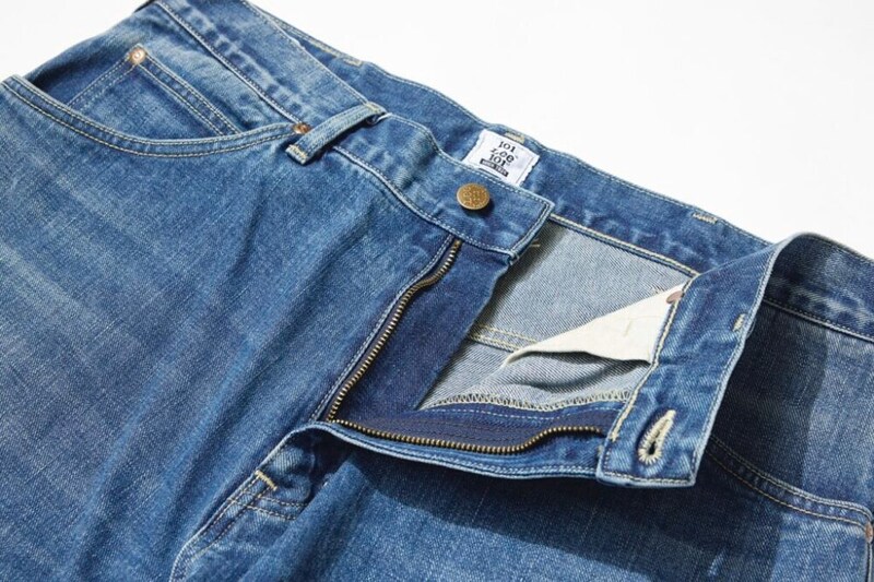 背面のシンチバックは省略され、サイドに配置されたボタン仕様のアジャスターによってシルエットの調整が可能だ。かのジェームズ・ディーンが愛用していたことでも知られるパンツ「101-Z」はフロントジッパー仕様で、表面がソフトな左綾のデニム生地は「COWBOY」と同様に「Enzy BLUE」を採用。