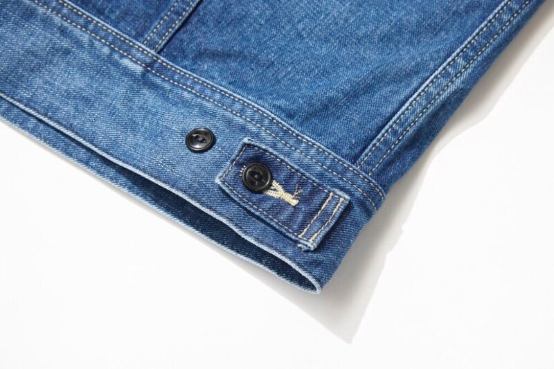 本コレクションのために特別開発された、廃棄予定のインディゴ糸からインディゴ成分を抽出し、再利用したリサイクルインディゴ「Enzy BLUE」から織られた右綾のセルビッジデニムを採用。旧式織機でしか織ることのできない特別なデニム生地だ。