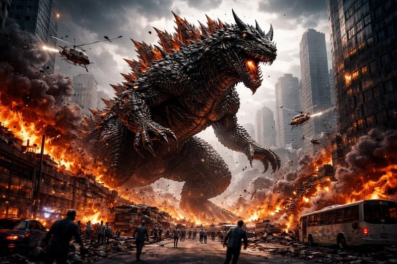 映画ではゴジラが街を踏みつぶし、戦車や戦闘機の攻撃にもびくともせず歩き回ります。