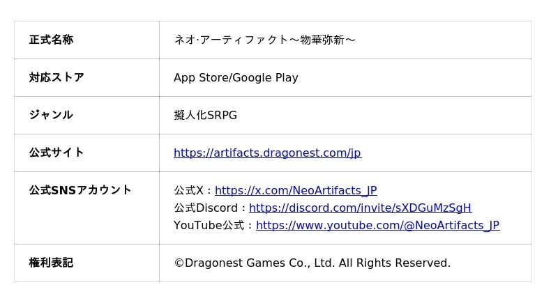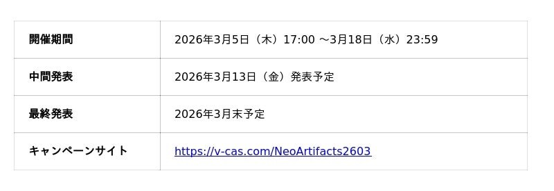 「All for Streamers」をコンセプトに、YouTube・Twitch・Mirrativなど各配信プラットフォームで活動する配信者(VTuber/ストリーマーなど)を支援する株式会社ミラティブのグループ会社、株式会社アイブレイド(本社:東京都豊島区 代表取締役:妻木 泰夫)が運営するVTuberキャスティングサービス「ぶいきゃす」(https://v-cas.com/)は、Dragonest Gamesが提供する『ネオ・アーティファクト~物華弥新~』のリリースを記念した配信キャンペーンを、2026年3月5日(木)から開催したことをお知らせいたします。
