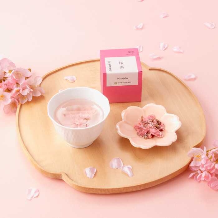 桜の花びらを塩漬けにした「桜茶40g」が1個、春限定の和フィナンシェ「がとーぶぶ さくら抹茶フィナンシェ」が2個。