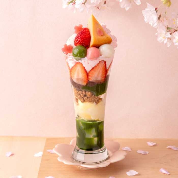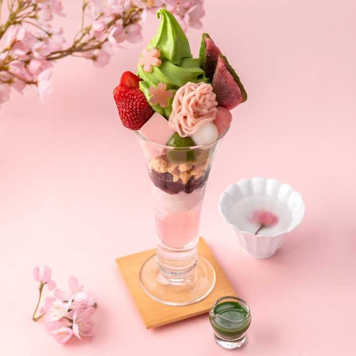 茶寮都路里各店では、人気メニュー「都路里あんみつ-桜-」が登場。