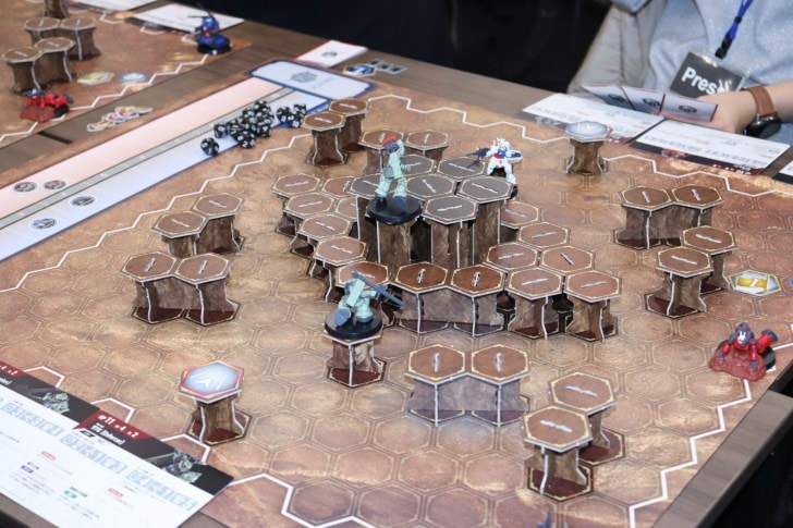 続いて「GUNDAM ASSEMBLE(ガンダムアッセンブル)」は、バトル形式のミニチュアゲームとなっている。約5cmのモビルスーツなどのミニチュアを駒として使用するため、プラモデルの組み立てや塗装も楽しめる。