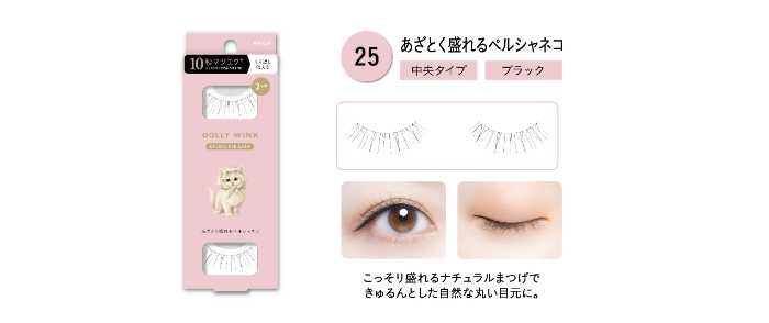 カット不要のサイズ感とやわらかい軸で、初心者でも簡単に装着できるのが特徴です。自まつげになじむ超極細毛を採用しているため、まるでマツエクのような自然な仕上がりに。