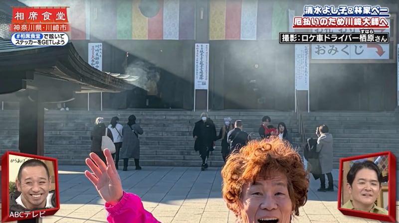 そんなぺーは2025年の厄を払うべく、厄除けで有名な神奈川県川崎市の川崎大師へ。道行く人々から、1人でロケをする自分だけでなく、パー⼦のこと聞かれるたびに、「奥さん今日いないの」「今、一生懸命家でね、やってんのよ。火事(家事)手伝い」と自虐ダジャレを披露! これには川崎の人々も、スタジオでVTRを見守るお笑いコンビ・千鳥も、苦笑いするしかなかった。