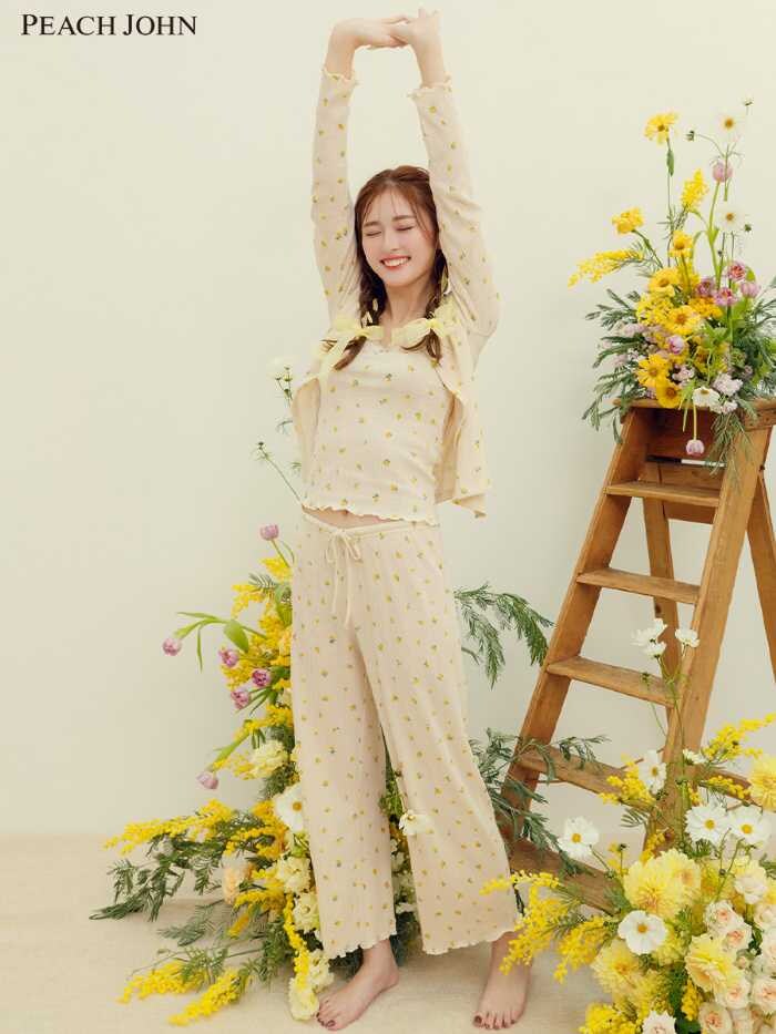 ゆうちゃみが着こなすPEACH JOHNの新作コレクションは、華やかなフラワーデザインと機能性を兼ね備えた魅力的なアイテムが揃っています。