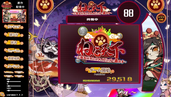 Steamで販売中のスピンオフゲーム『ねこ天下~三国志パチンコタイピングで轟かす~』においても一周年記念の背景を追加するアップデートを実施します。