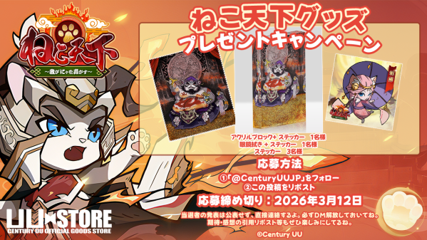 また、CenturyUU公式ショップ「UUSTORE」で描きおろしイラストを用いたグッズの販売を開始するほか、同アイテムのプレゼントキャンペーンをCenturyUU公式Xにて開始します。