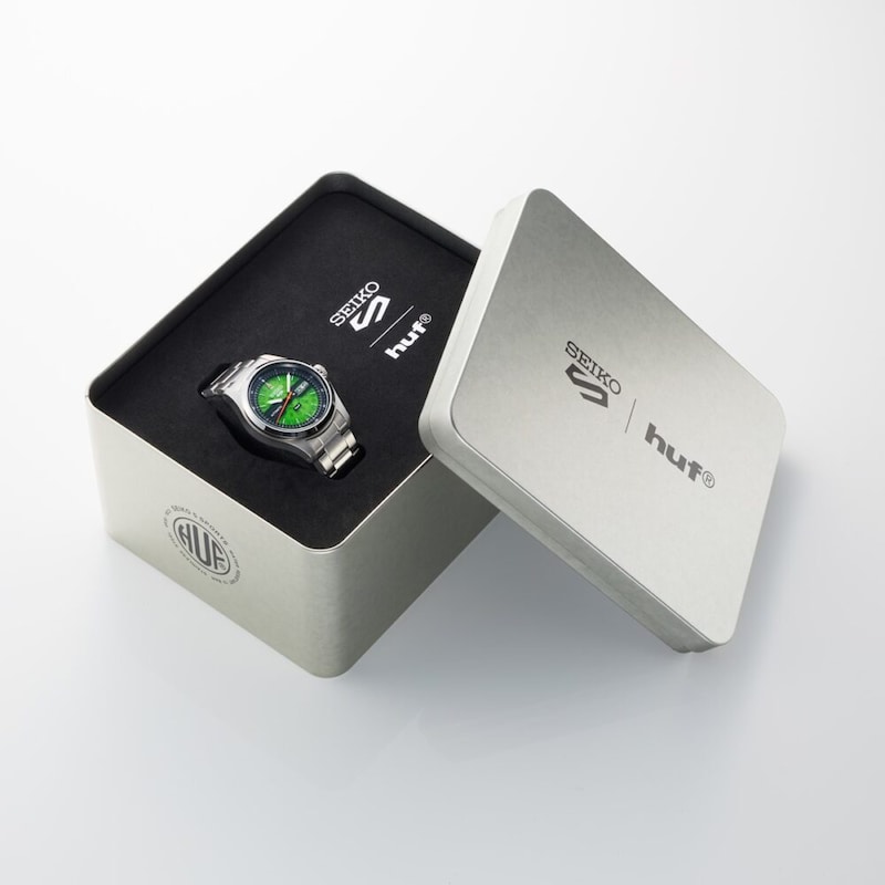 本作は、セイコーとHUFからのメッセージとして「make the most of your time」をボックスの裏面に印刷したステンレス製のスペシャルボックスに収められている。さらに、HUFで人気を集めているデザインを採用したオリジナルのウオッチクロスが付属する。