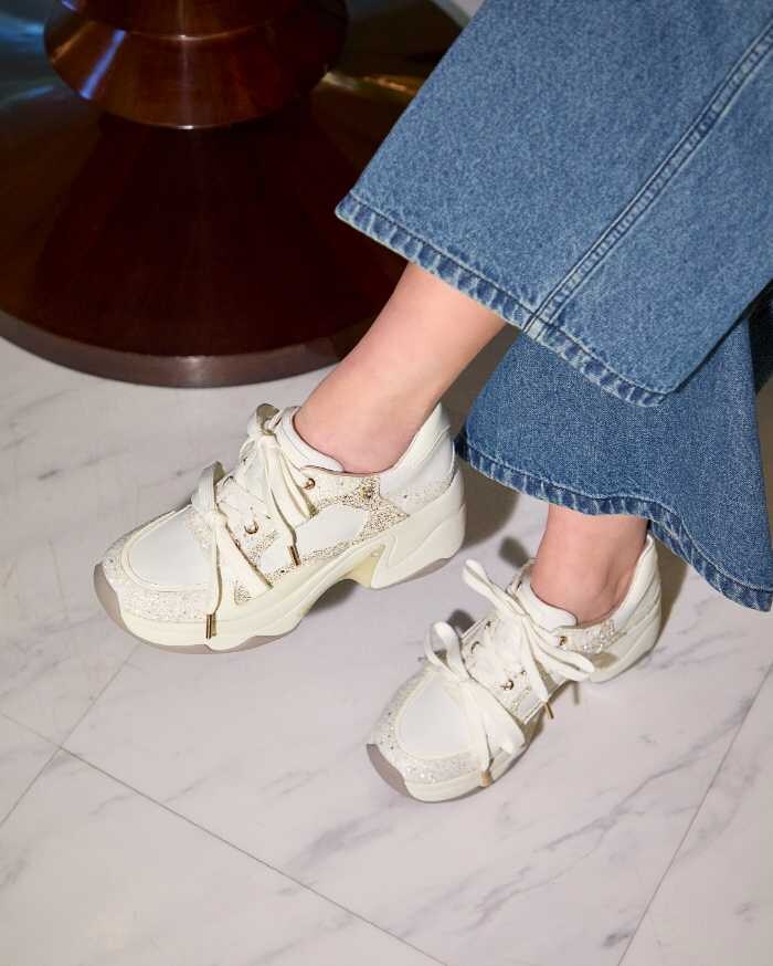 存在感のあるソールでスタイルアップを叶える「VOLUME SOLE SNEAKEARS」は、ヒール高8㎝台でありながらスニーカーならではの安定感が魅力。