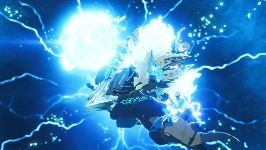 蒼白い雷光をその身に纏う姿から「雷狼竜」とも呼ばれる牙竜種。蓄電殻と称される甲殻や帯電毛などを活用し、極限まで電力を宿した状態は「超帯電状態」と呼ばれ恐れられている。碧色の甲殻は、溢れる電気から自らを守る絶縁体の役割を持つ。また、無数の甲殻に覆われた分厚い尻尾は、外敵を排除する武器であり、かつ巨躯を制するバランサーの役目も担っている。