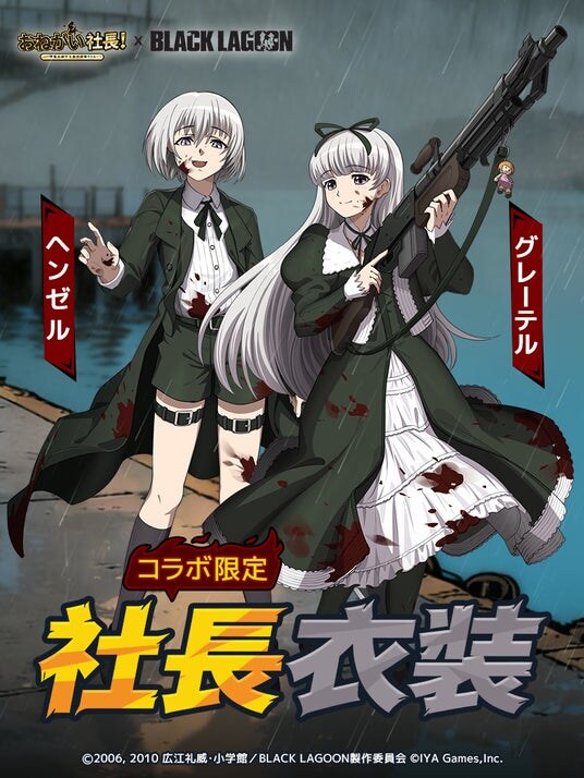 IYAGAMESは、スマホ向け人気会社経営シミュレーションゲーム『おねがい社長!』において、TVアニメ『BLACK LAGOON』(ブラック・ラグーン)とのコラボを2026 年 3 月 6 日 (金)より開催します。