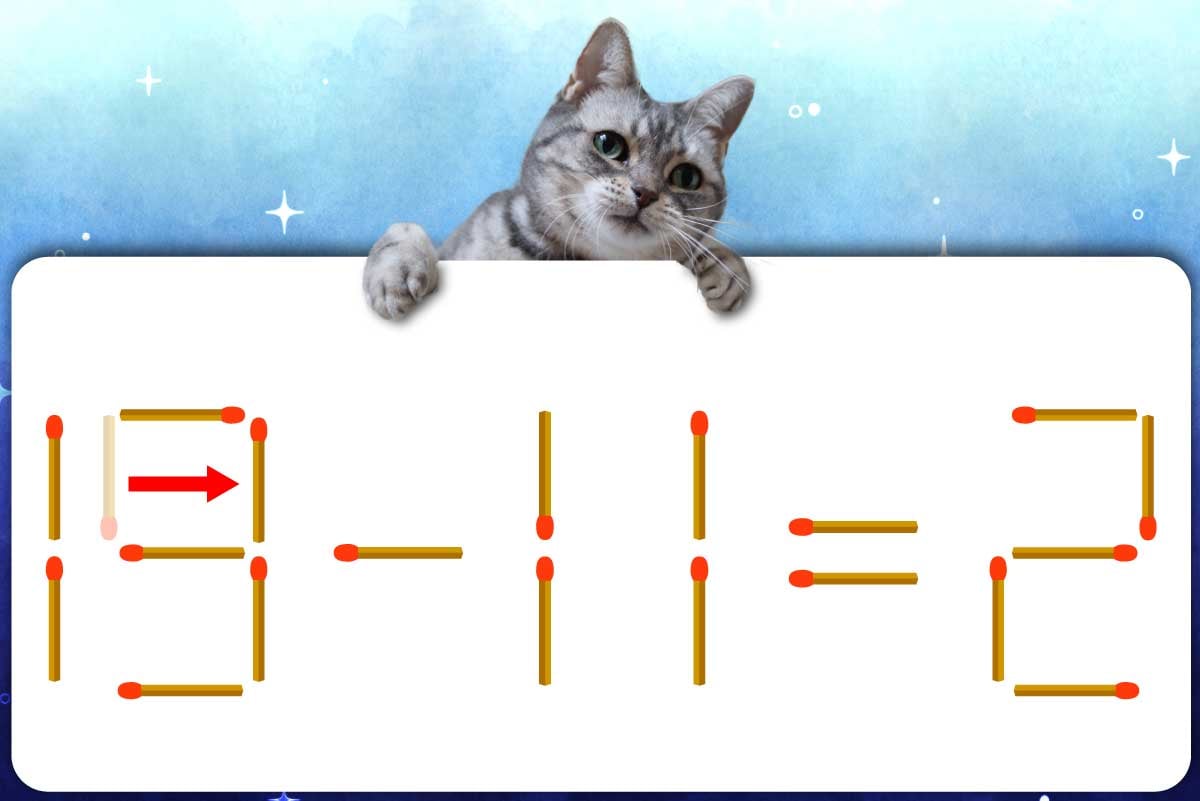 「5」のマッチ棒を1本移動させて「3」を作り、「13-11=2」にする。