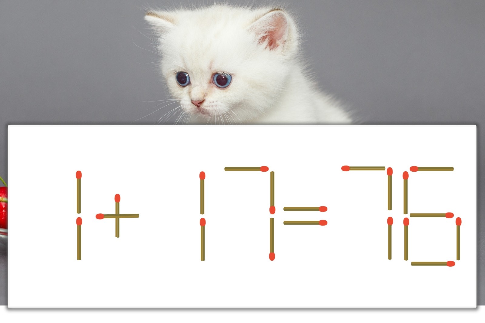 「7」を別の数字に変化させると答えが導き出せます。「7」のマッチ棒を1本移動して、「6」を「8」にしてみましょう。すると、「1+17=18」が成立します。