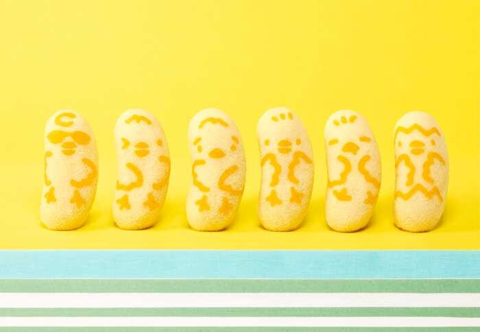 『東京ばな奈ピヨレモンバナナレモン味、「見ぃつけたっ」』は、黄色いピヨ柄のふんわりスポンジケーキの中に、シチリアレモンが香るバナナカスタードクリームをたっぷり包んだ季節限定スイーツ。