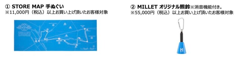 「MILLET BRAND STORE TOKYO SHIBUYA」のオープンを記念し、店頭で商品を購入したお客様には、先着でMILLETオリジナルノベルティがプレゼントされる。
