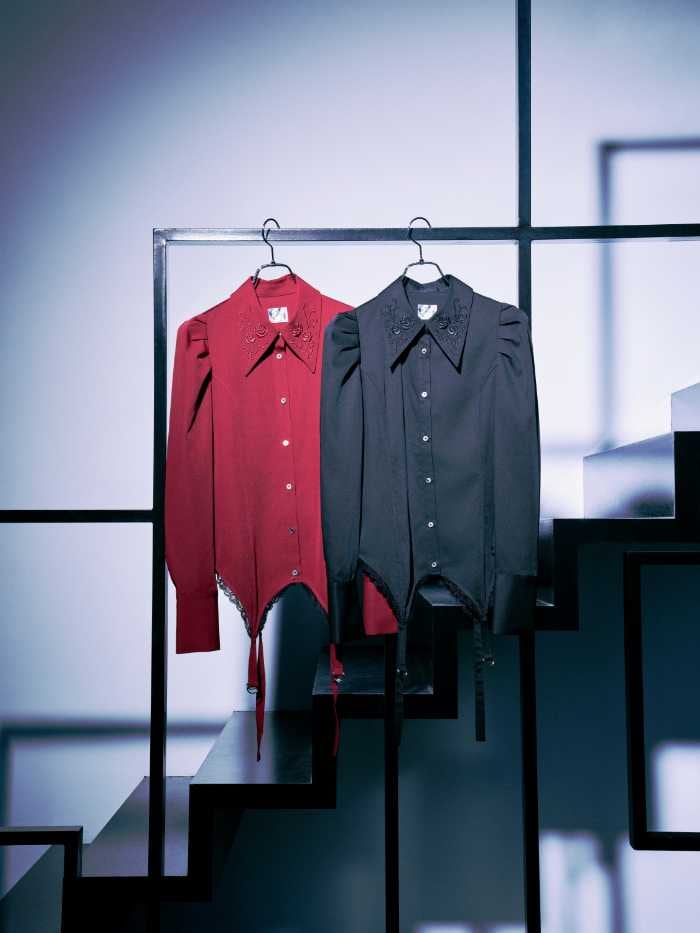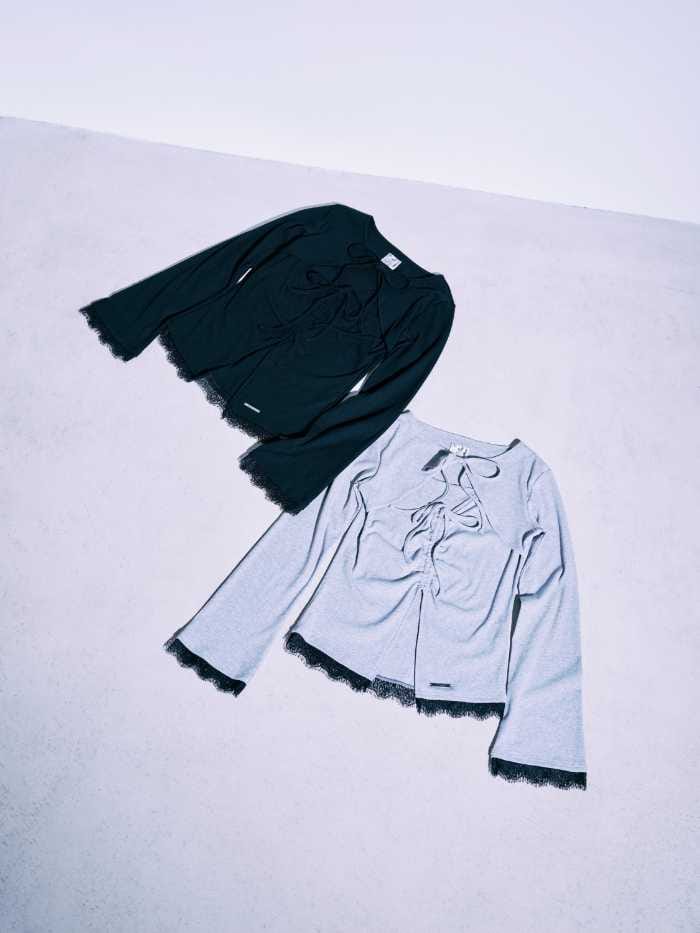 パワーショルダーとレースを組み合わせたランジェリーライクなビスチェデザインがポイント。裾を折り返すことでビスチェ風にも着用できます。