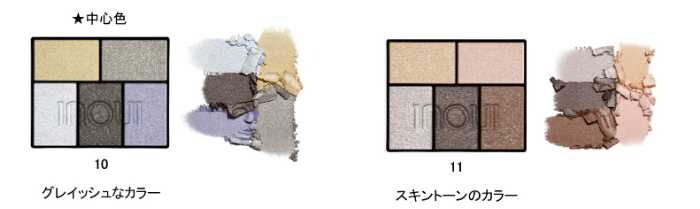 パレットには異なる光の強さをもつ5色をセット。「照度コントロールパール」を採用し、光の反射レベルを調整することで印象的な目元を演出します。