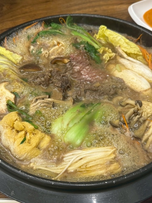 現地の人でお昼も活気がある大人気の“きのこしゃぶしゃぶ”