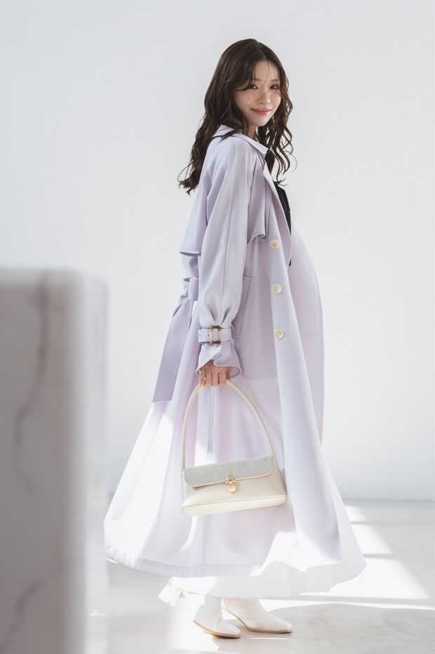 風に揺れる柔らかなツイル素材を使用した、MERCURYDUO人気No.1のトレンチコート。ウエストリボンや袖ベルトを調整することでシルエットにメリハリが生まれ、女性らしい印象に仕上がります。春らしい明るいカラー展開でコーディネートを華やかに彩る一着です。