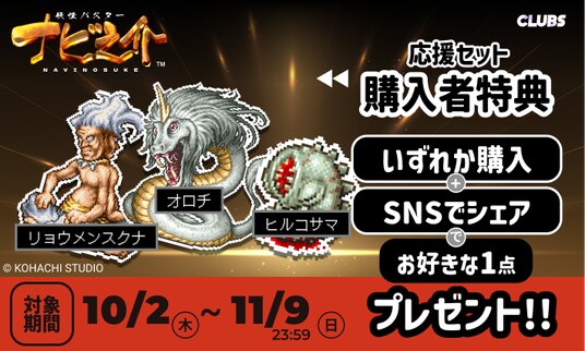 フレームダブルオー株式会社(以下、フレームダブルオー)が提供する、デジタル推し活サービス「CLUBS」において、和風ドット絵ロールプレイングゲーム『妖怪バスター ナビ之介』とのコラボレーションが決定し、公式ストアが新たにオープンしました。あわせて、ゲームに登場するキャラクターや世界観をモチーフにした公式アイテムの販売を2025年10月2日(木)よりスタートします。