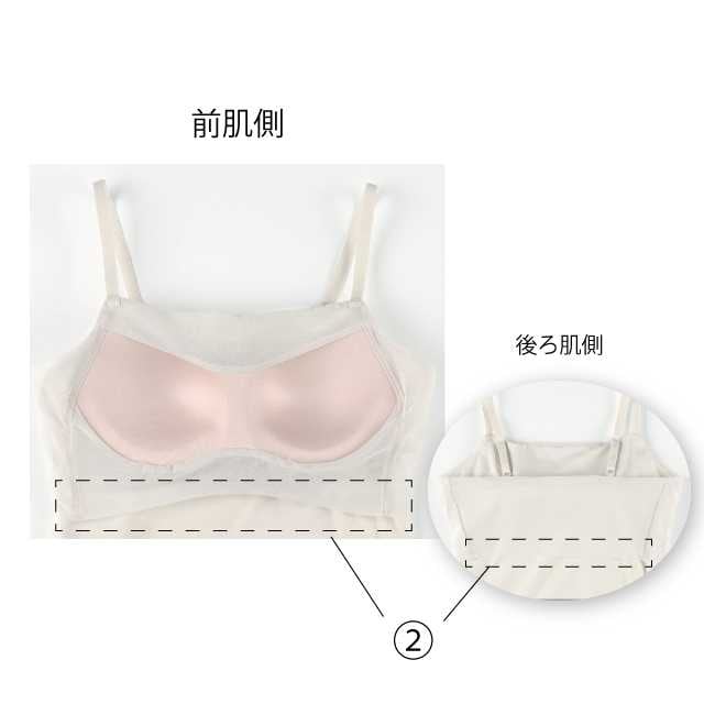[シンクロブラトップ for Teen]は、アンダーゴムを使わない仕様が大きな特長。ストレッチ素材がやさしく体にフィットすることで、しめつけ感を軽減しながらズレ上がりにくい快適な着ごこちを実現しています。
