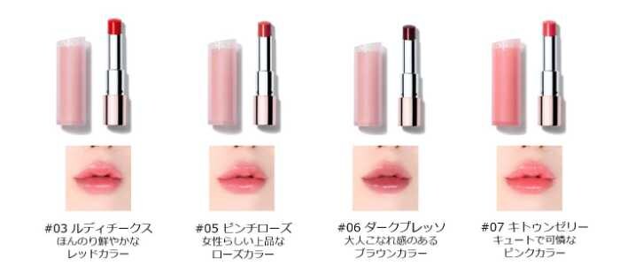 やわらかな彩りとツヤ感が魅力のカラー展開。肌なじみのよい色味で自然な血色感を演出します。いずれのカラーもひと塗りで顔色を明るく見せ、ピュアな血色感を演出します。