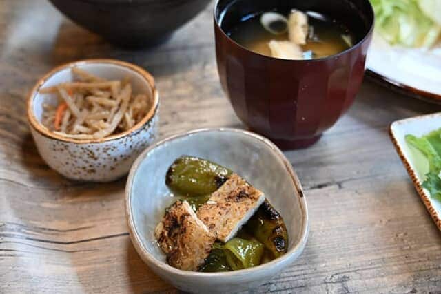 小鉢は「万願寺とうがらしと京揚げの煮びたし」に「金平ごぼう」で、どちらも出汁の風味が上品で素材感が印象に残る味でした。