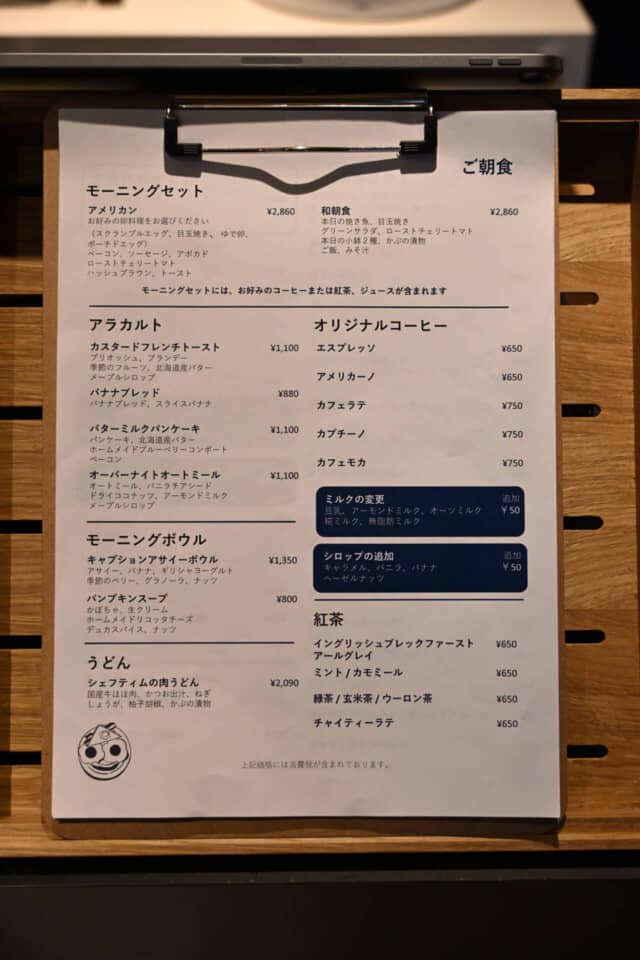 ▲朝食のメニュー