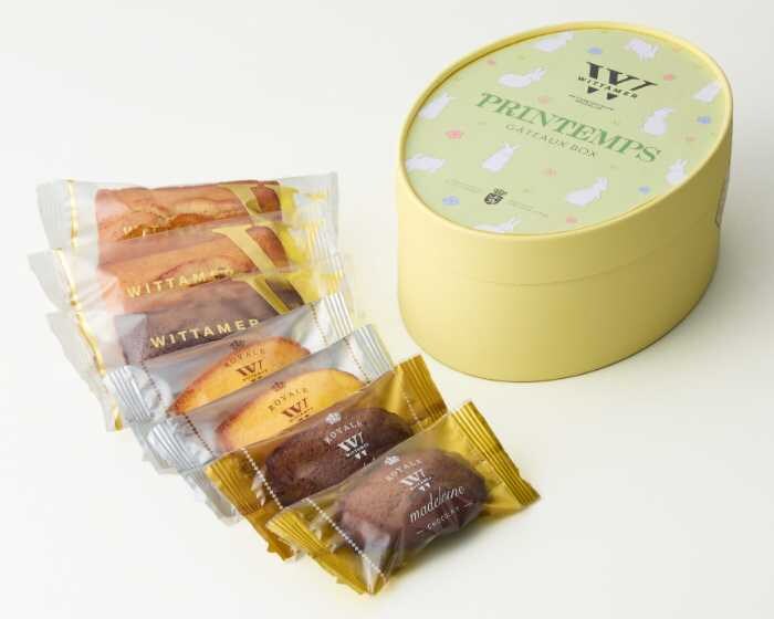 プランタン・ガトーBOXは、7個入で価格1,944円(税込)。内容はフィナンシェ×2個、フィナンシェ・オ・ショコラ×1個、ロイヤル・マドレーヌ(バニラ/ショコラ)×各2個。