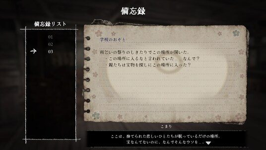会話した内容は備忘録にメモとして記され何度でも読み返すことができます。