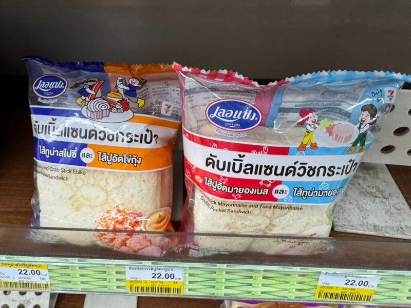 タイのセブンイレブンに行ってみたら、ランチパックが売られていたんですよ。でもよく見てみると、ブランドがランチパックじゃあない。調べてみると「Double Pocket Sandwich」というシリーズのようだ。
