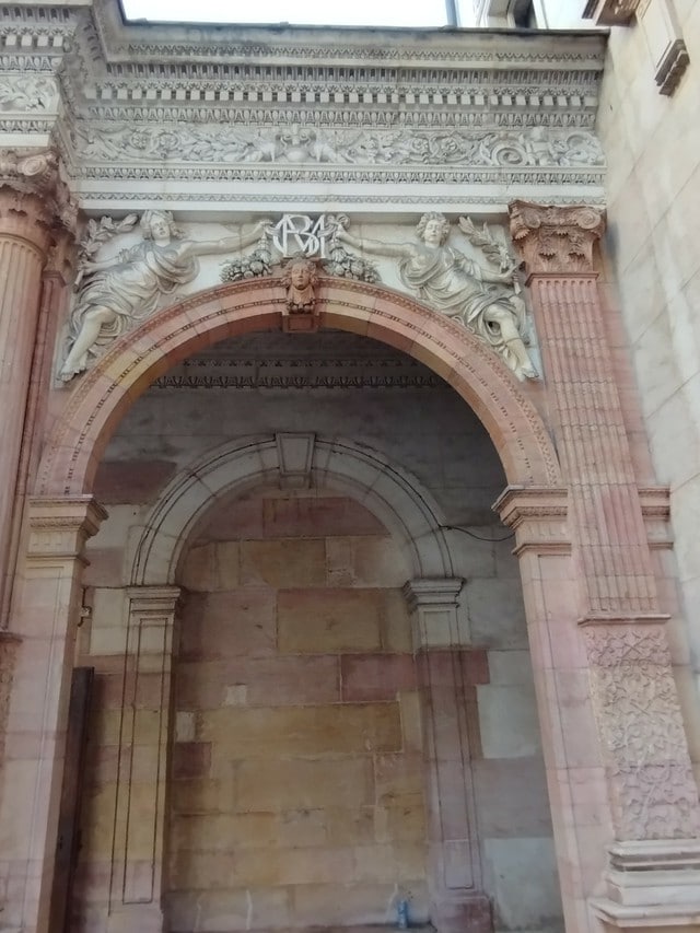 ノートルダム教会の裏手にあり、装飾たっぷりな薄ピンクの石のエントランスをくぐると、内側の壁や屋根の凝ったデザインを楽しむことができるのです。