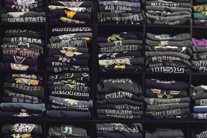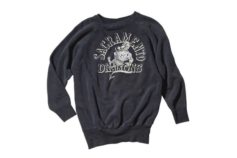 「古着ってどのアイテムでもそうかもしれないけど、黒は難しいです。やっぱり残らないんですよね。でも、その分だけ異様に存在感があります。これまで何百枚とフロッキープリントのスウェットを見てきましたけど、同じものが本当に少ないんです。当時、学生がリアルに着ていたもので、“売るための商品”じゃなかった。だからチームの人数分みたいに少数で作られることが多かったんですよね。集め始めた数年前でさえ、高くて500ドルでも『高いな』と思っていました。それがいまでは2000ドルを超えることも珍しくない。流行と希少性、その両方ですね。本が完成するのは1つの目標でした。達成されたら『ここで終わり』って思っていたのですが……。まったく終わらないんですよ(笑)。昔から収集癖がある性格なので」