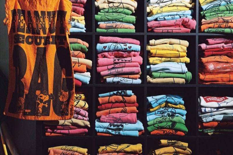 上および下左はPagi氏のコレクションルーム、そのクローゼットの一部だ。室内はヴィンテージアイテムで埋め尽くされ、このほかにも希少なミリタリーやデニムのラックが並んでいる。なかでもフロッキープリントスウェットとピーナッツの棚は圧巻だ。