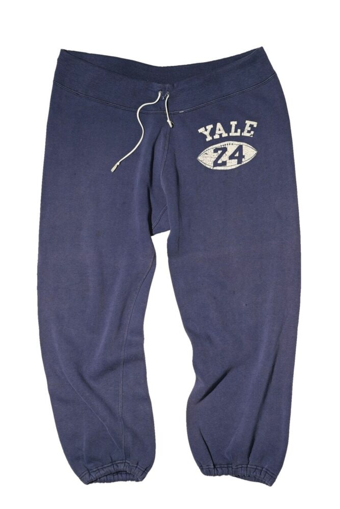 SWEAT PANTS。上のパーカと共通するイエール大学のプリント意匠。フットボール型ナンバリング、チャンピオン製、タグデザインも一致し、同時期の使用が推測される。番号違いではあるが、当時はこのセットで着用されていたと思われる。AGE:1940s/BRAND:CHAMPION/ MATERIAL:ALL COTTON