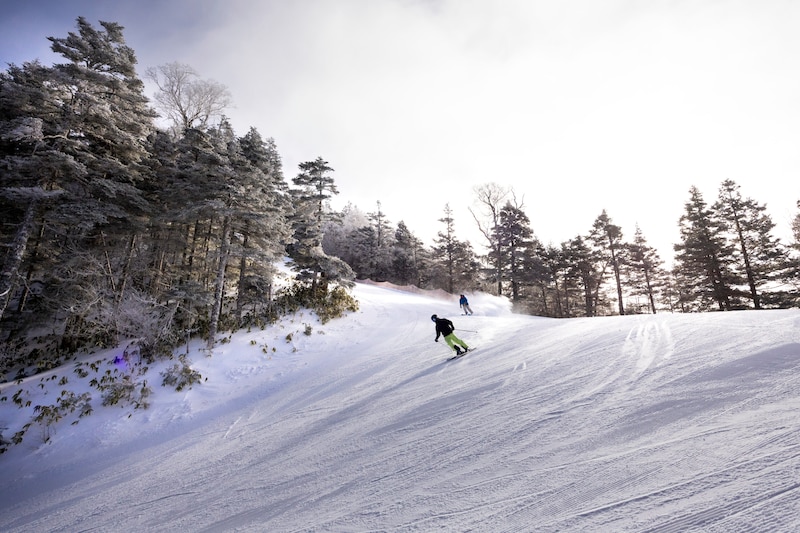 「例えば、リフトを降りたところが標高1,800mで、ちょうどダケカンバと白樺の境目。そこから伸びる全長1,200mの「樹海コース」は、両脇にはシラビの樹氷が並んでいて、雪がつけばまるで樹の海。真っ白な木々の中を、景色を楽しみながら滑れるんですよ」とおすすめコースを教えてくれた。