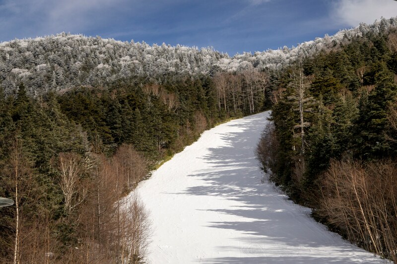 ボトムまでの全長は4,000m。中腹を過ぎても平均して20~25度の斜面が続くが、途中には景色を楽しめる開放的な斜面も現れる。