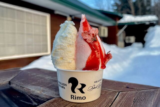 網走に店を構える「ジェラテリアRimo」からは、イタリアの国際コンテストで2冠を達成したジェラートマエストロが作る春の新作が登場。北海道産いちごを使用した濃厚ジェラートに桜の香りを重ね、口どけに合わせて変化する味わいが魅力です。