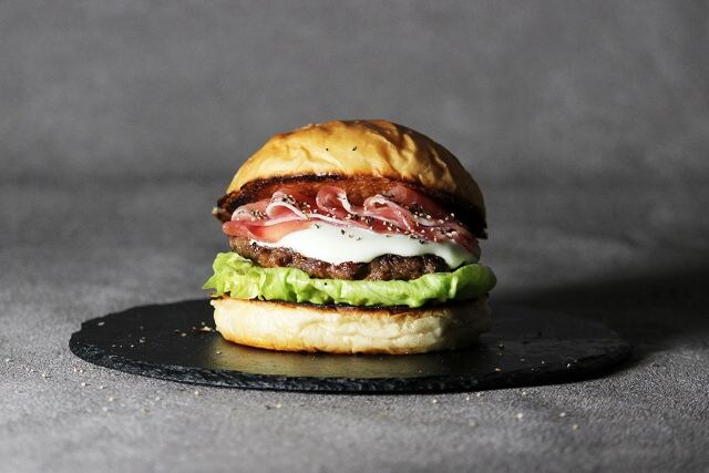 ESSEN SAPPORO「生ハムと北海道クワトロチーズのハンバーガー」1,350円 ※ジェイアール京都伊勢丹限定北海道産牛肉100%の粗挽きビーフパティと、北海道産小麦を使用した自家製バンズにこだわる「ESSEN SAPPORO」。生ハムの塩気と濃厚チーズが絶妙にマッチする、ジェイアール京都伊勢丹限定バーガーをテイクアウトで。