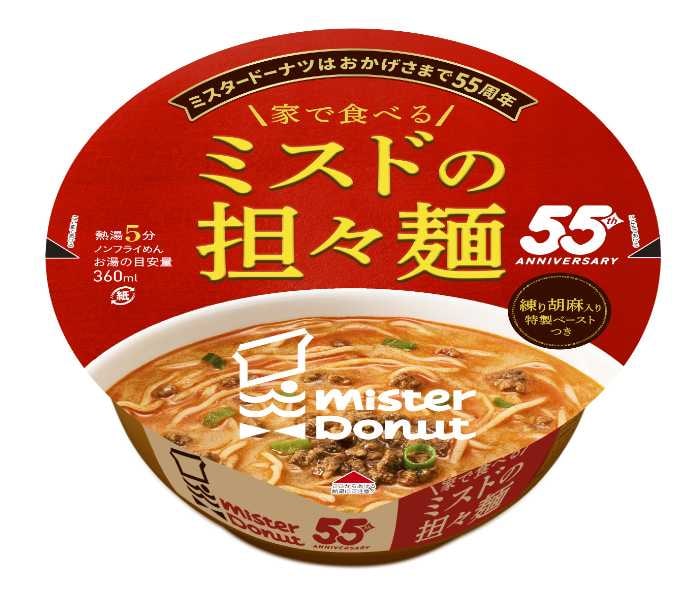 ミスタードーナツが55周年を記念して新たなカップ麺「家で食べるミスドの担々麺」を登場させました。人気の四川担々麺を再現したこの商品は、花椒のしびれとラー油のピリッとした辛さが特徴のスープに、香ばしい練り胡麻が加わり、深いコクを生み出します。ノンフライ麺との相性も抜群で、まるでお店で食べるような本格的な味わいが楽しめます。テイクアウト専用で、ミスタードーナツ全店で販売中。価格は390円(税込)♡